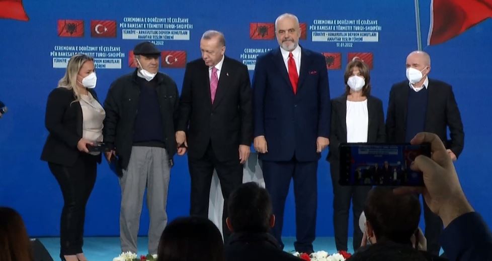 Kryeministri Edi Rama dhe Presidenti i Turqisë, Reçep Tayip Erdogan i kanë dorëzuar sot çelësat e banesave të reja 4 familjeve në Laç.