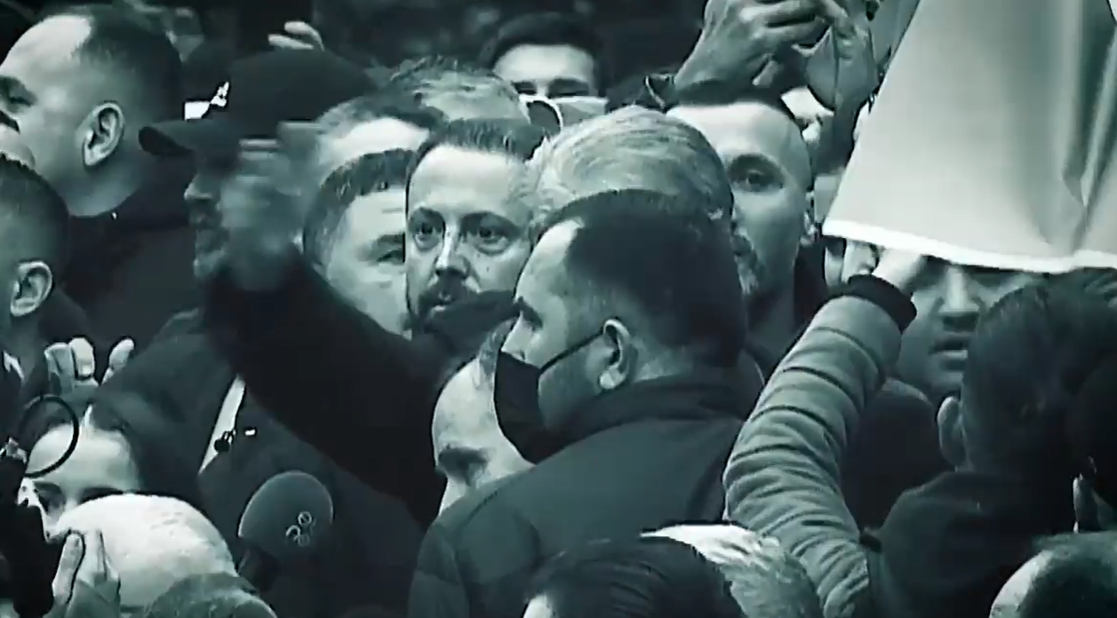 Në video ka pamje nga protesta në 8 janar ku pati përplasje në përpjekje për marrjen e selisë blu.