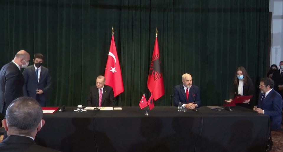Në këtë ceremoni janë të pranishëm janë kryeministri Rama dhe Presidenti Erdogan, të cilët do të mbajnë edhe një konferencë për gazetarët. Shtatë marrëveshjet po firmosen edhe nga ministrat respektivë.