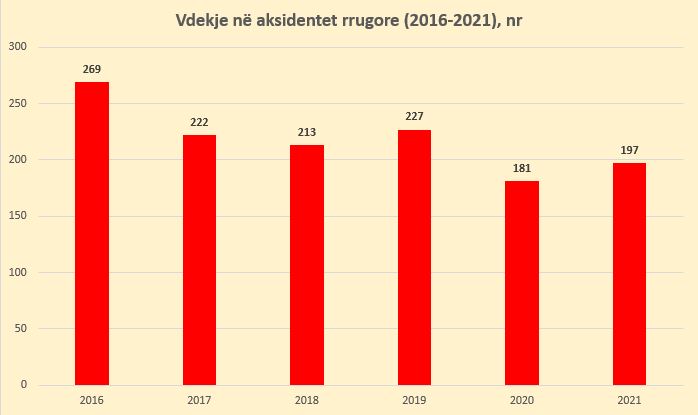 Pavarësisht shifrave që ende janë shqetësuese ajo që bie në sy është rënia graduale vit pas viti e numrit të aksidenteve dhe mesatarja disavjeçare mbetet dukshëm më lart se shifrat e sotme. Kështu në vitin 2016 numri i vdekjeve nga aksidentet rrugore ishte 269 apo rreth 37% më lart sesa në vitin 2021.