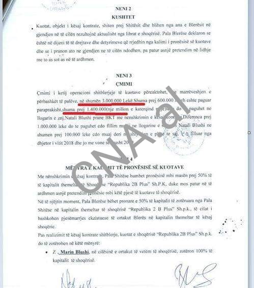 CNA.al ka siguruar dokumentet zyrtare, sipas të cilave në janar të vitit 2019, vajza e Ben Blushit ka shitur aksionet e saj, për një shumë prej 3.000.000 lekë.
