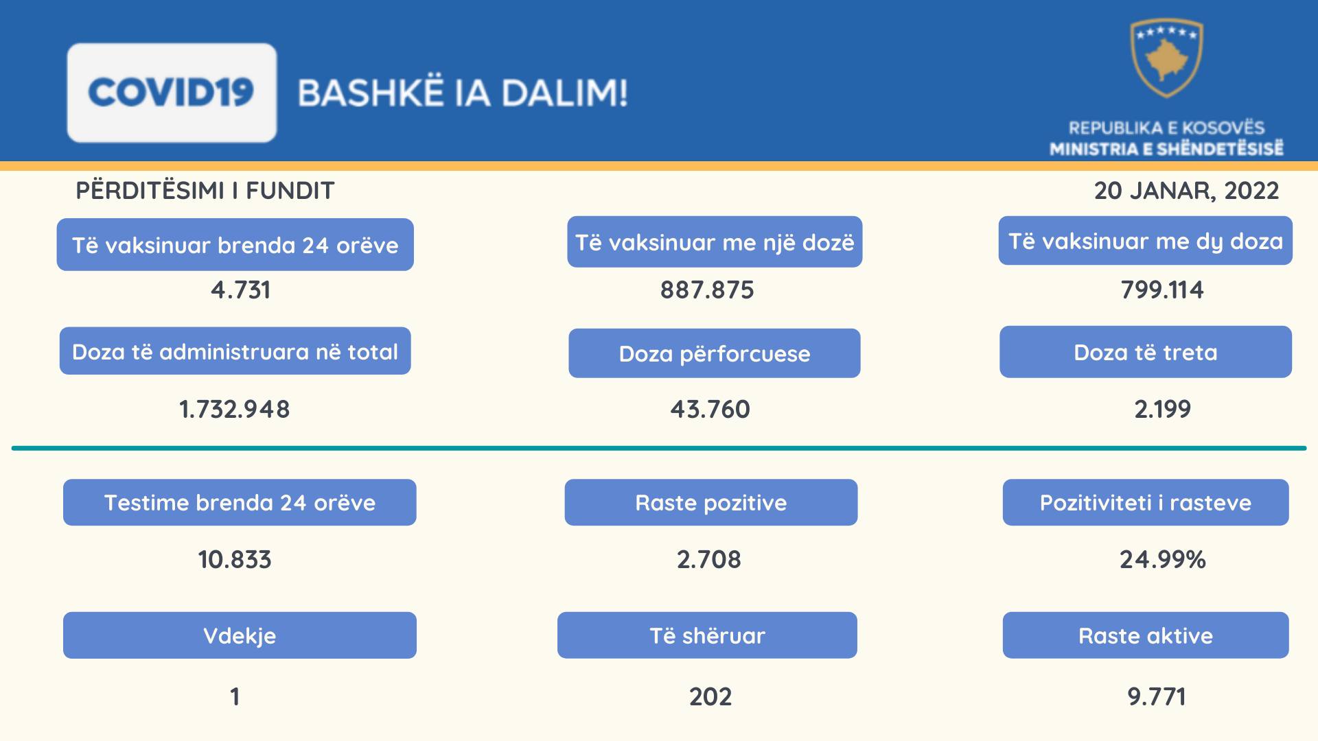 “20 Janar 2022: Ministria e Shëndetësisë, sipas të dhënave nga Instituti Kombëtar i Shëndetësisë Publike të Kosovës, informon: