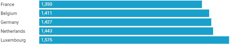 Për Bashkimin Europian-27, kjo peshë është 13%. Më e ulëta në Europë është në Mbretërinë e Bashkuar, me 7.9%, ndërsa në vendet e Bashkimit Europian, peshën më të lartë të shpenzimeve për ushqime e kanë rumunët me 23.1% ndaj totalit.