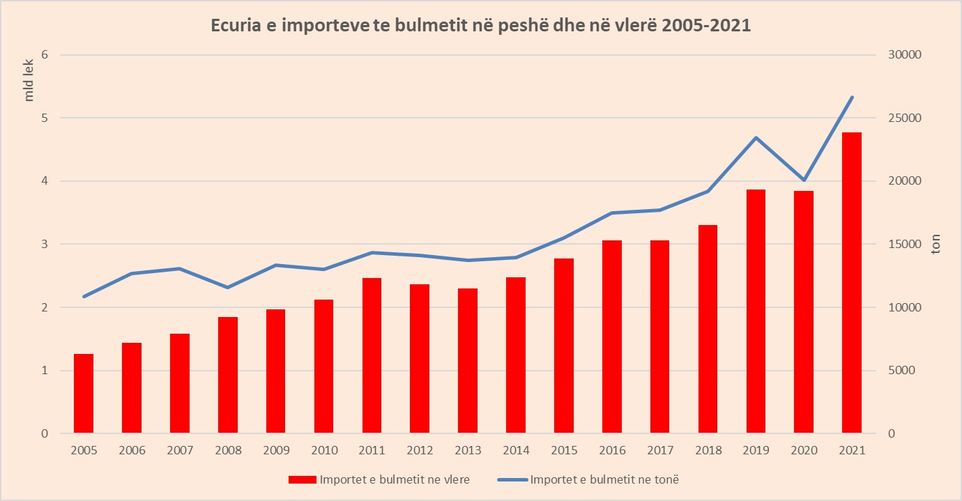 Importet e bulmetit nga ky vend arritën në 327 milionë lekë në vitin 2021, me një rritje 251% në raport me vitin 2020.