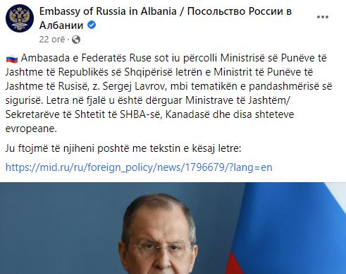 “Ne duam të marrim një përgjigje të qartë për pyetjen se si partnerët tanë e kuptojnë detyrimin e tyre për të mos forcuar sigurinë e tyre në kurriz të sigurisë së shteteve të tjera në bazë të përkushtimit ndaj parimit të sigurisë së pandashme. Sa synon konkretisht Qeveria juaj ta përmbushë këtë detyrim në aspektin praktik në rrethanat aktuale? Nëse e refuzoni këtë detyrim, ju kërkojmë ta shprehni qartë këtë.”– thuhet në letrën e ministrit Lavrov, i cili kërkon një përgjigje të menjëhershme nga Shqipëria.