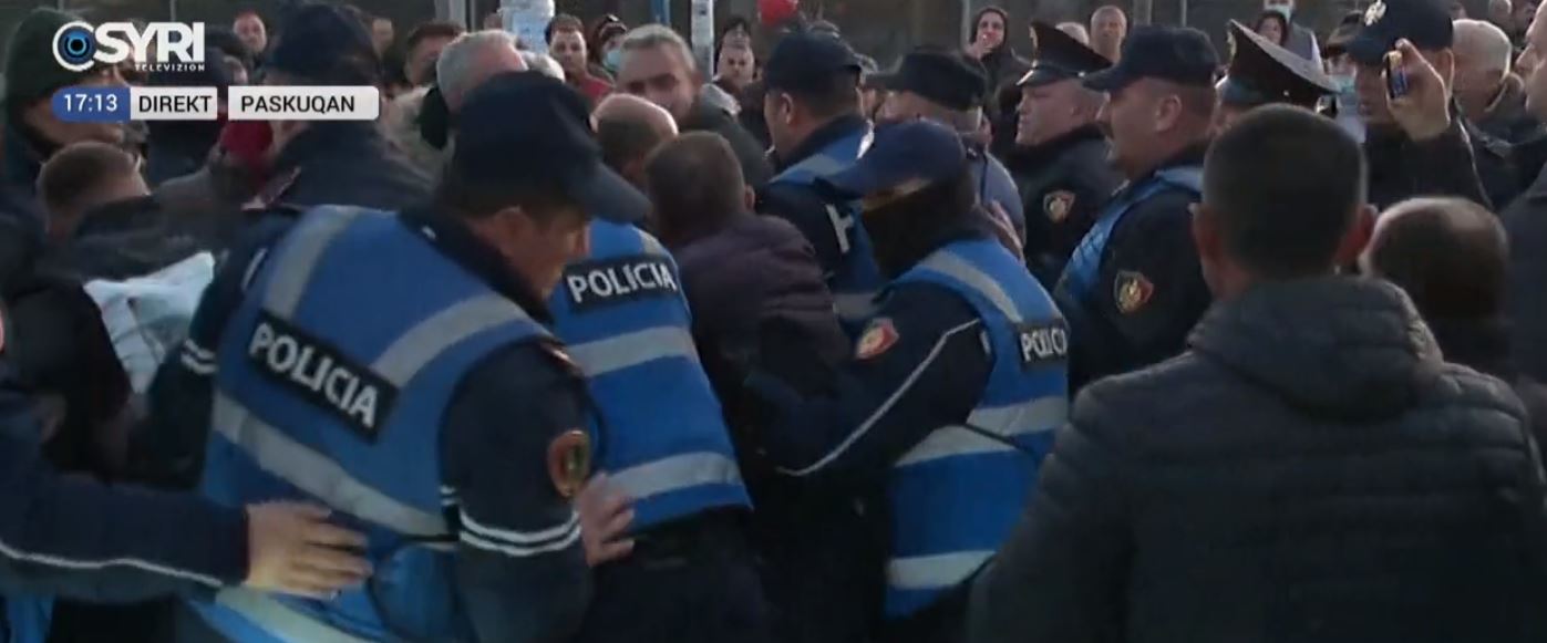 Ata kanë bllokuar rrugën ndërsa policia e shumtë në numër kërkon shpërndarjen e saj duke u përpjekur të largojë protestuesit me forcë.