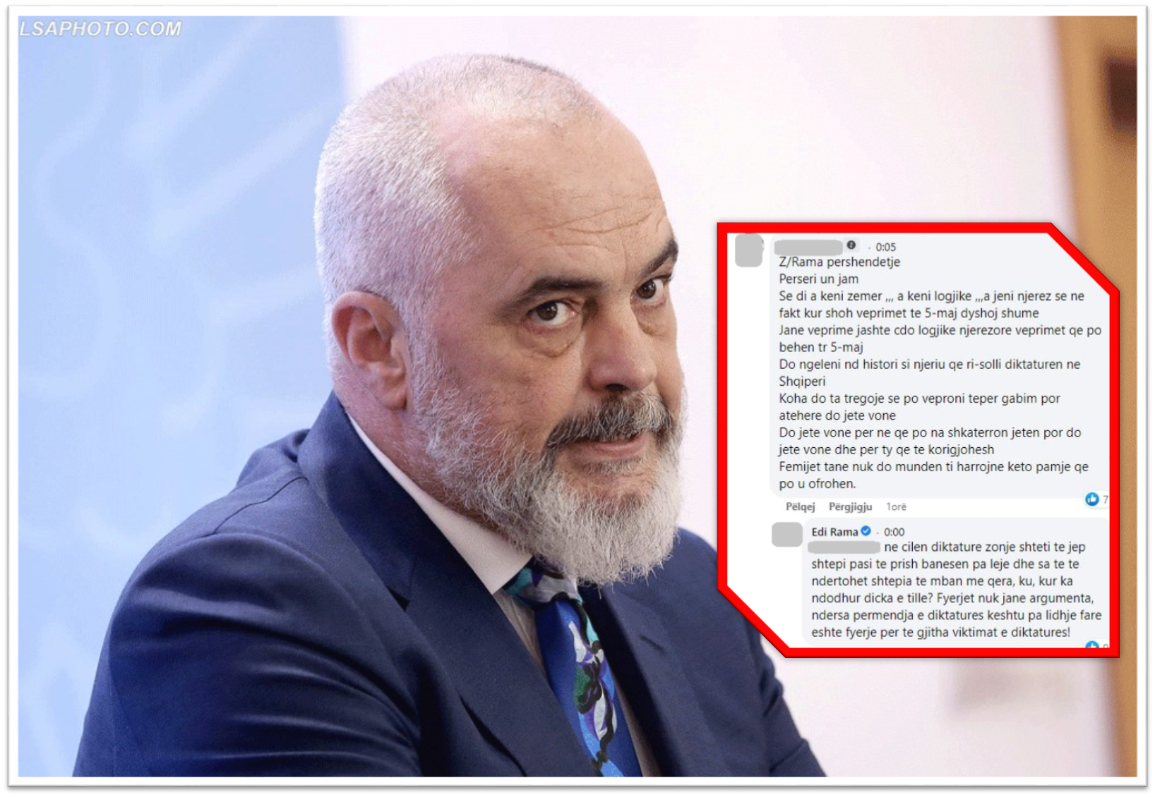 “Në cilën diktaturë zonjë shteti të jep shtëpi pasi të prish banesën pa leje dhe sa të të ndërtohet shtëpia të mban me qera, ku, kur ka ndodhur diçka e tillë? Fyerjet nuk janë argumenta, ndërsa përmendja e diktaturës kështu pa lidhje fare është fyerje për të gjitha viktimat e diktaturës!”– shkruan Rama.