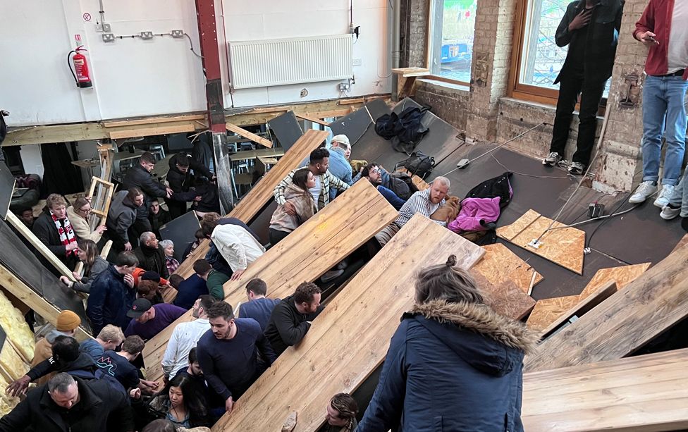 Trembëdhjetë persona kanë mbetur të lënduar pasi një kat i ndërmjetëm u shemb në një klub në lindje të Londrës.