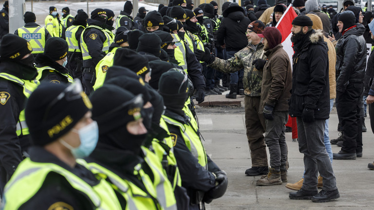 Policia filloi arrestimin e demonstruesve që nuk respektonin urdhrin dhe të tërheqë automjetet që mbështesin protestën e kamionistëve kundër kufizimeve Covid, vaksinimit të detyrueshëm e pasaportës së vaksinave në Kanada. Ata i larguan protestuesit nga ura të dielën përpara se të bënin arrestime.
