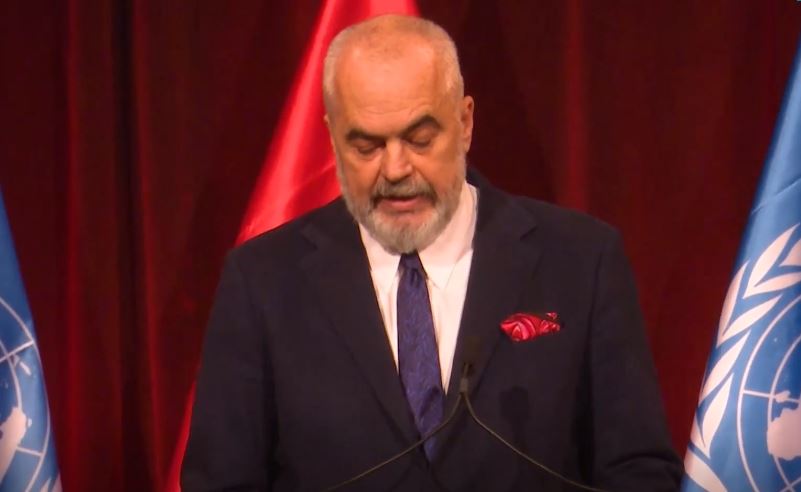 Që prej kësaj kohe, kërkimi i vendit të merituar në rajon dhe Europë ka mbetur busulla jonë, edhe në momentet më të mundimshme në rrugën tonë të vështirë drejt një shoqërie të lirë e demokratike, drejt familjes me të cilën duam të bashkohemi, familjes europiane së cilës i përkasim. Bota ka ndryshuar dhe është transformuar gjatë 76 vjetëve të fundit. Shumë vende e shoqëri kanë parë jetët e tyre të ndryshojnë rrënjësisht, por mund ta them pa asnjë dyshim se transformimi i Shqipërisë është një prej më mbresëlënësve e më me ndikim, deri në atë pikë sa prirem te bie dakord me miqtë që na thonë se përgjatë tri dekadave të fundit, Shqipëria është transformuar më shumë se gjatë tre shekujve të fundit. Ky është bilanci ynë, për të cilin jemi krenarë dhe duam ta përmirësojmë më tej. Në ditët e sotme ne vërejmë se vlerat që dikur i merrnim të mirëqena si aspirata për t’u arritur janë vënë në mëdyshje, por, ne që u kemi mbijetuar kohëve të errëta, këto dyshime nuk i ushqejmë, sepse e dimë se cila është alternativa e këtyre vlerave. Ne i kemi vënë të drejtën ndërkombëtare dhe të drejtat e njeriut në qendër të agjendës sonë për mandatin në Këshillin e Sigurimit. Ne i shohim ato si përparësitë e organizmit më të fuqishëm në botë.”- tha Rama.