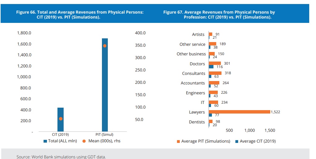 Sipas Bankës, kjo do të rriste mbledhjen e të ardhurave të përgjithshme dhe mesatare, me disa variacione mes profesioneve. Edhe pse vetëpunësimi është kryesisht i përhapur midis punëtorëve me të ardhura të ulëta dhe me aftësi të ulëta, aplikimi i TAP në mënyrë progresive nuk do të përkthehej në një barrë tatimore të shtuar për çdo të ardhur nën 30,000 lekë (244 euro).