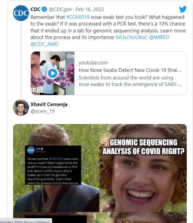 Ata që anashkaluan formulimin e postimit në Twitter dhe shikojnë videon me të cilën është lidhur CDC do të shohin shpejt se mjekët kishin të drejtë. Prodhuar në janar nga revista Wired, pjesa shpjeguese gjashtëminutëshe zbulon se diku nga pesë deri në dhjetë përqind e shtupave nga testet pozitive PCR për Covid-19 në SHBA përfundojnë në laboratorë që i përdorin ato për të mbajtur gjurmët e varianteve të virusit.
