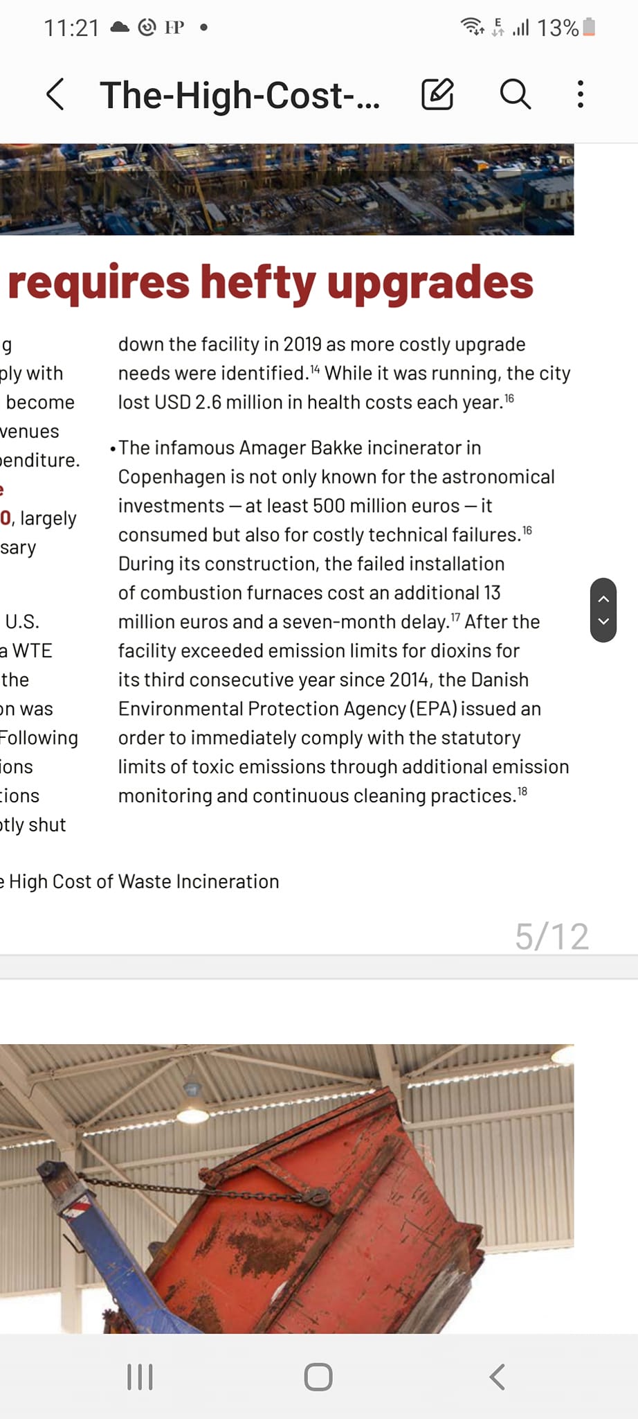 Madje në 2014 në Copenhagen është sanksionuar një djegës që ka kushtuar 500 milion euro sepse emetonte në ajër gazra të dëmshëm, madje u konsiderua që dështim teknologjik ( lexo më poshtë).
