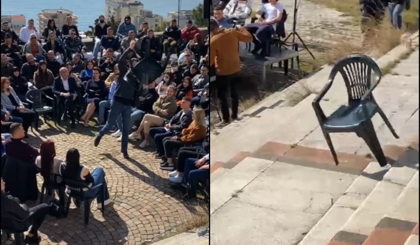 Ai hodhi edhe një karrige në mënyrë simbolike, të cilën e konsideroi karrigen 30-vjeçare të pushtetit, të modelit të vjetër.