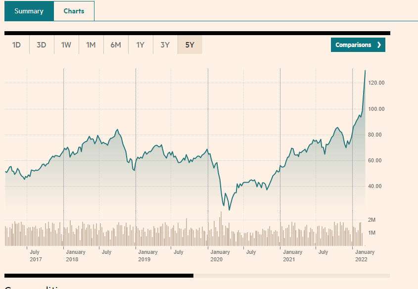 Çmimet globale të naftës janë rritur me 67% që nga fillimi i vitit 2022, së bashku me mallrat e tjera, duke ngritur shqetësime për rritjen ekonomike botërore dhe stagflacionin.