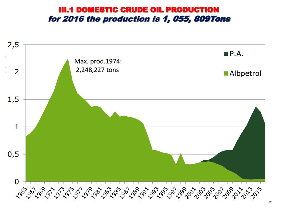 Një tjetër statistikë, sërish zyrtare, thotë se nafta bruto e Shqipërisë, që në vitet 2015-2016 ka kapur shifrën e nxjerrjes 1 milion ton (maksimumi është arritur në vitin 1974 me 2.2 milion ton, tabela 3), në çdo kohë ka pasur sukses në treg, edhe në atë të brendshëm, edhe në atë botëror.