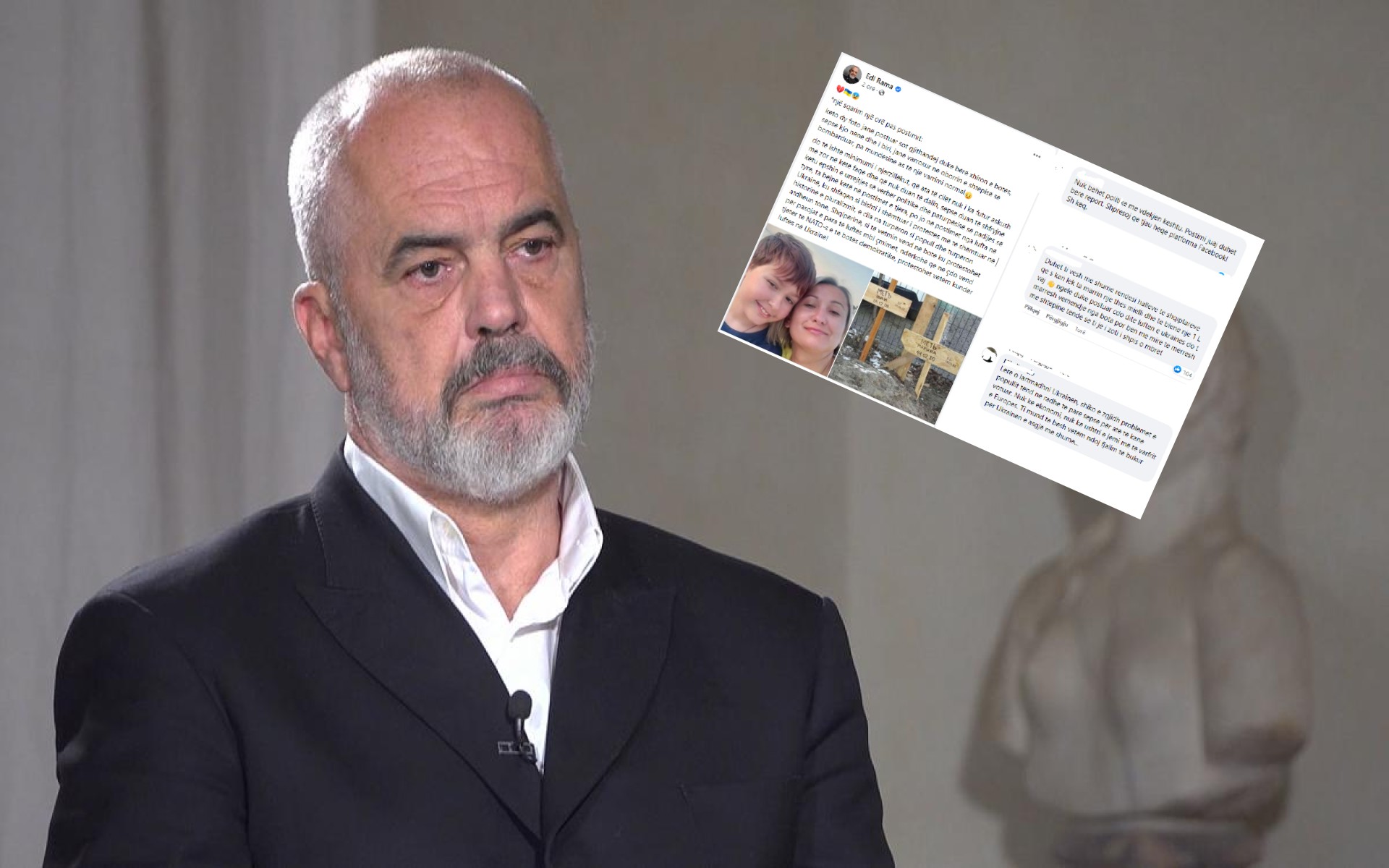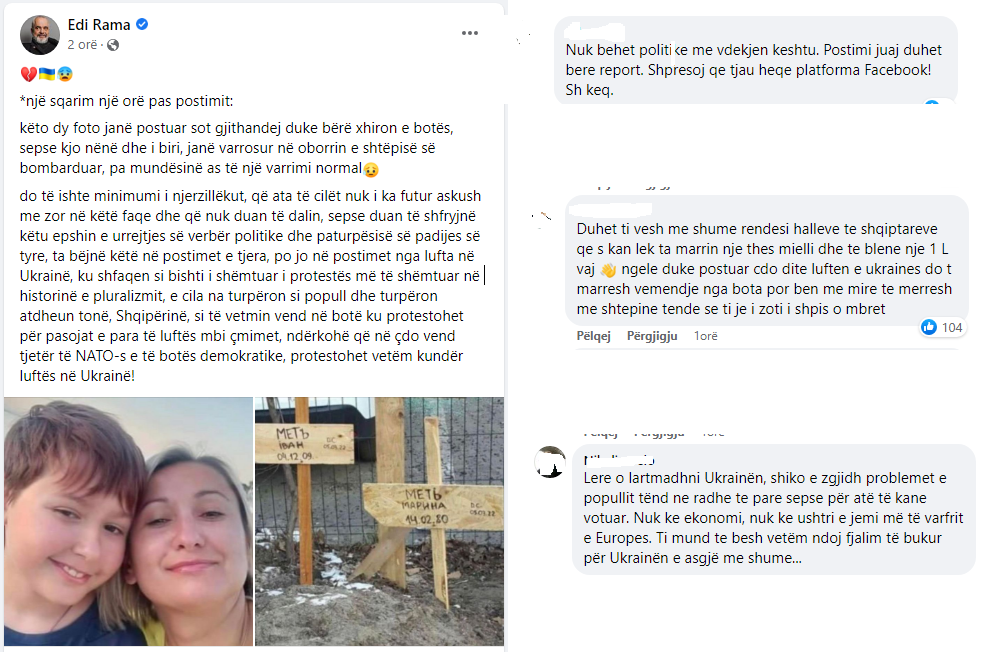 Pasi u përball me kritika të shumta nga komentues të ndryshëm, Kryeministri Edi Rama është detyruar të publikojë një sqarim për foton e postuar të nënës me fëmijën e vrarë në Ukrainë.