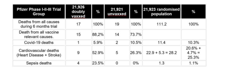 Gjurmët e Fazës I-II-III të Pfizer zbuluan gjithashtu se shkalla e vdekjeve kardiovaskulare në grupin e vaksinuar ishte dy herë më e lartë se shkalla në grupin e pavaksinuar.