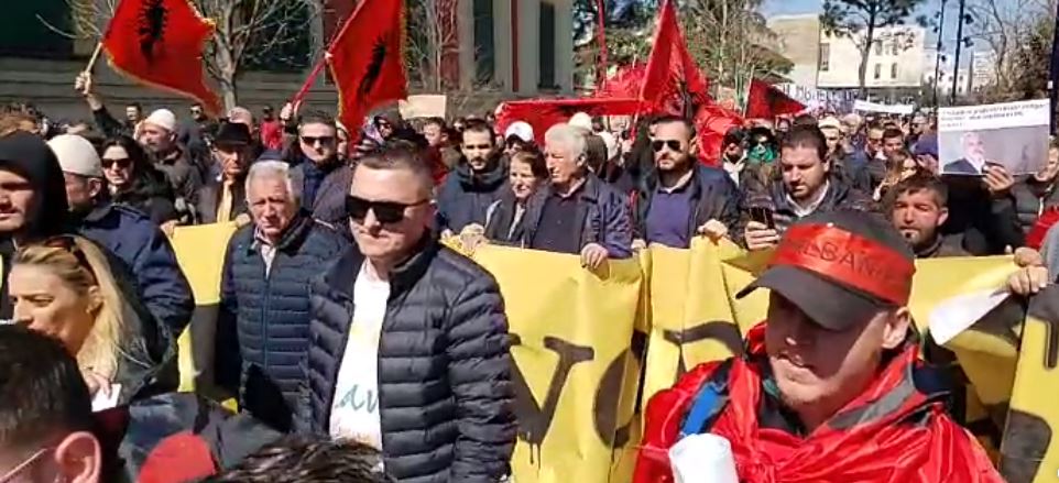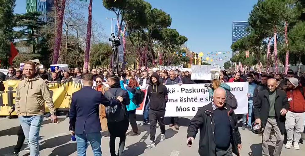 Pasi u mblodhën në sheshin Skënderbej, tanimë protestuesit janë drejetuar me një marshim drejt Kryeministrisë ku do të rreshtojnë kërkesat e tyre për qeverinë dhe do mbahen disa fjalime.