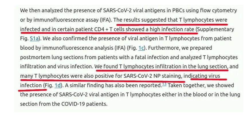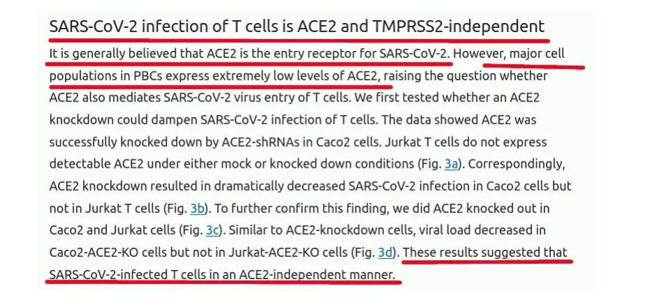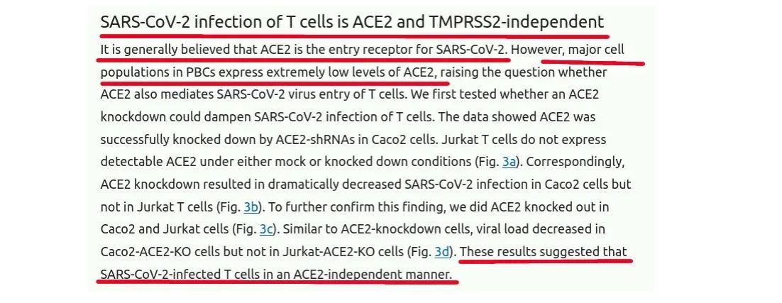 Ky tropizëm (tërheqje ndaj) qelizave T dhe aftësia për t’i infektuar ato nuk kishte lidhje me mënyrën e zakonshme se si Sars-Cov-2 infekton qelizat e tjera, si qelizat e mushkërive, që shprehin receptorët ACE2 dhe TMPRSS2, sepse qelizat T nuk i kanë ata receptorë.