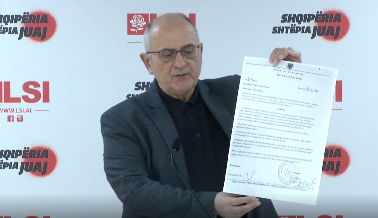 Nënkryetari i Lëvizjes Socialiste për Integrim, Petrit Vasili në një deklaratë për shtyp ka nxjerrë dokumentin në të cilin denoncon urdhrin që i është dhënë (në këtë rast) mjekëve të Beratit që të pezullojnë analizat për pacientët për pjesën e mbetur të muajit mars.