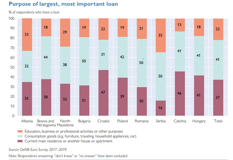Pas Shqipërisë, Serbia kishte përqindjen më të lartë të individëve që kishin marrë kredi për edukim dhe zhvillim profesional me rreth 35%, ndërsa shihet se serbët kishin përqindjen më të ulët të individëve që marrin kredi për të blerë shtëpi me vetëm 15%.
