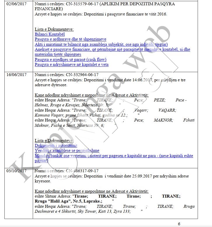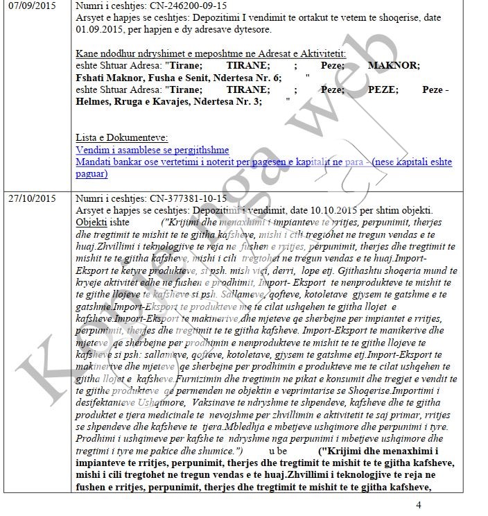 CNA.al sjell më poshtë dokumente, që tregojnë kompani të njëjta që vetëm ndryshojnë adresë, apo pronarë.