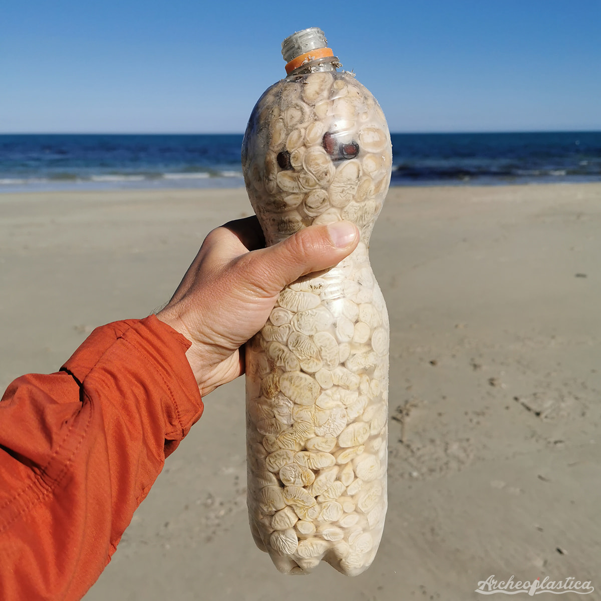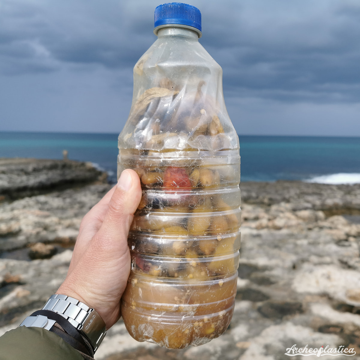 “Në këtë pikë, pas shisheve shqiptare në formën e ariut, shpresojmë që të lindë një grup shkëmbimi kulturor trans-adriatik me temë plastikën. Me siguri gjatë stuhive të sirokut do të mbërrijë shumë materiale nga Italia si në brigjet shqiptare ashtu edhe në ato kroate e greke. Do të ishte interesante të dokumentohej situata në plazhet e tyre. Ndërkohë, na tregoni nëse edhe ju në dimër e gjeni këtë lloj shishe plot me perime dhe perime të prera në plazhet e Adriatikut.
