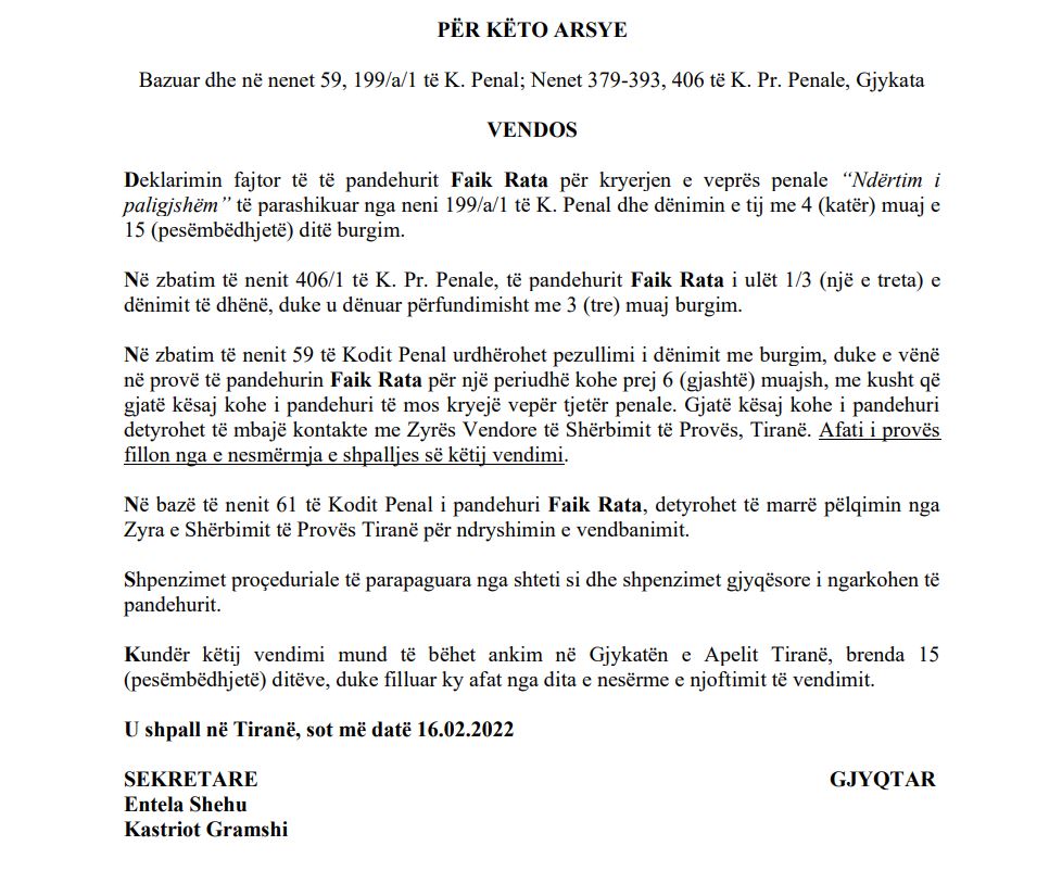 *Vendimin e gjeni të plotë këtu: Vendimi i gjyqtarit Kastriot Gramshi /Hashtag.al