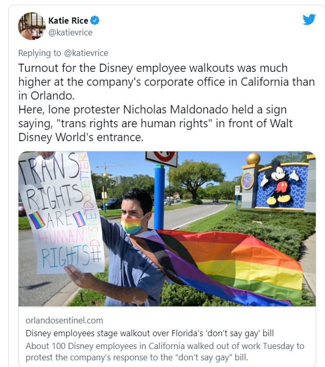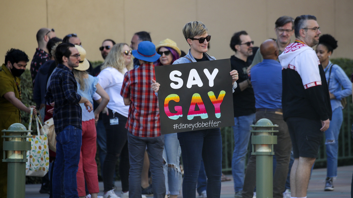 Mbi 100 punëtorë nga pjesë të ndryshme të kompanisë thuhet se morën pjesë në protestën kundër projektligjit të Floridës ‘Mos thuaj homoseksual’.