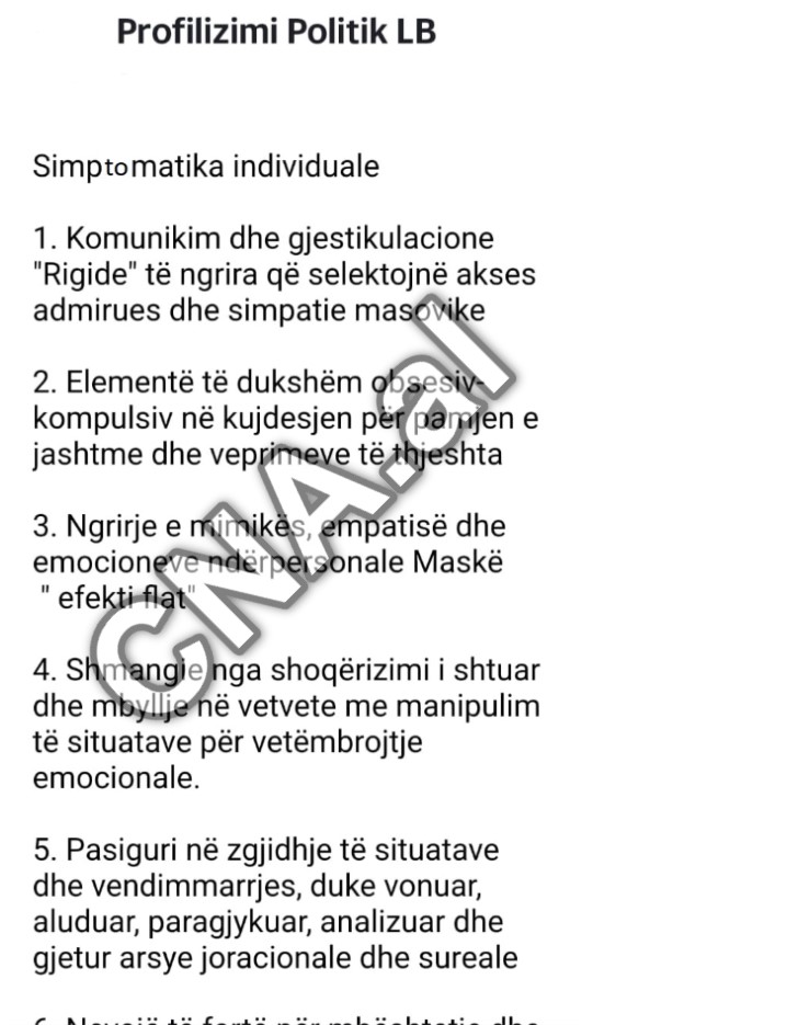 Pikërisht për shkak të pamjeve që kanë dalë sot, CNA.al po sjell më poshtë 5 nga pikat e simpotmatika individuale të Lulzim Bashës, bërë në një raport profesionistësh, një grup ekspertësh të disa fushave. Ata e kanë analizuar profilin e Lulzim Bashës mjaft qartë.