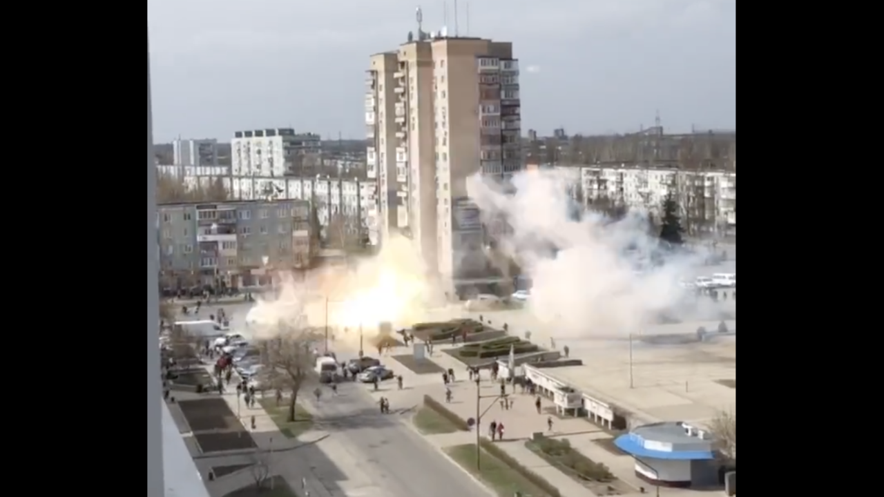 Banorët ishin mbledhur në qendër të qytetit në jug të vendit për të folur dhe kënduar himnin kombëtar të Ukrainës, kur ushtarët rusë mbërritën dhe i futën disa në mjete, tha administrata lokale në një postim në internet.