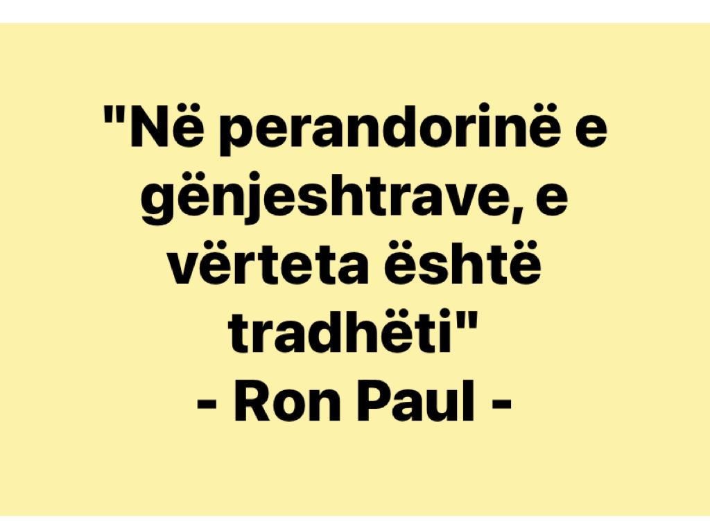 Ai e shoqëron këtë mesazh me një citim nga ish-politikani amerikan Ron Paul: “Në perandorinë e gënjeshtrave, e vërteta është tradhëti”.