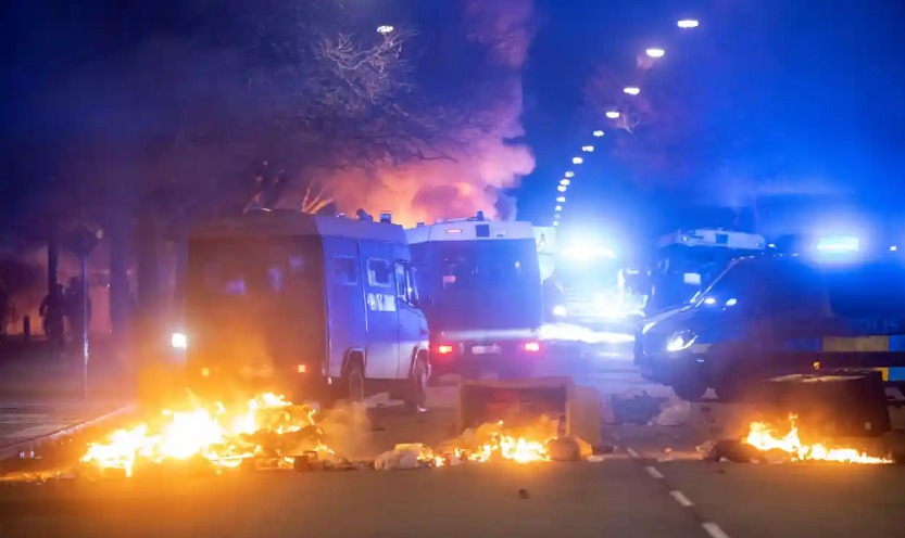 Policia tha se deri 100 persona kryesisht të rinj hodhën gurë, i vunë zjarrin makinave, gomave dhe koshave të mbeturinave dhe vendosën një gardh pengues në qytetin e Landskrona pasi autoritetet zhvendosën një demonstratë të planifikuar atje nga partia daneze Stram Kurs në qytetin në afërsi të Malmos.