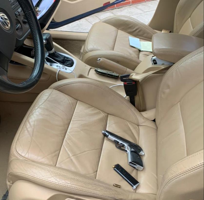 Gjatë kontrollit të mjetit që ky shtetas drejtonte, shërbimet e Policisë gjetën dhe sekuestruan në cilësinë e provës materiale, një armë zjarri pistoletë, një krehër me municion luftarak dhe dy mjete prerëse (thika).