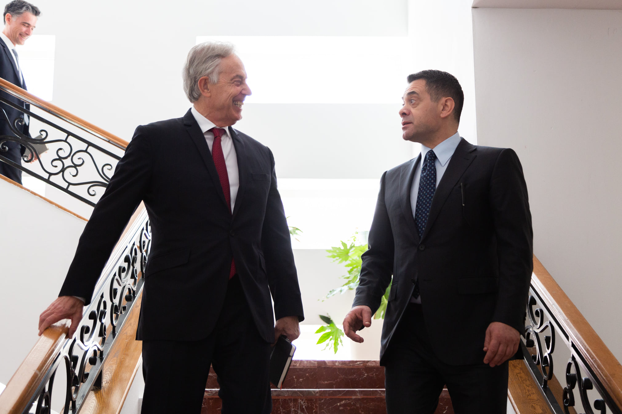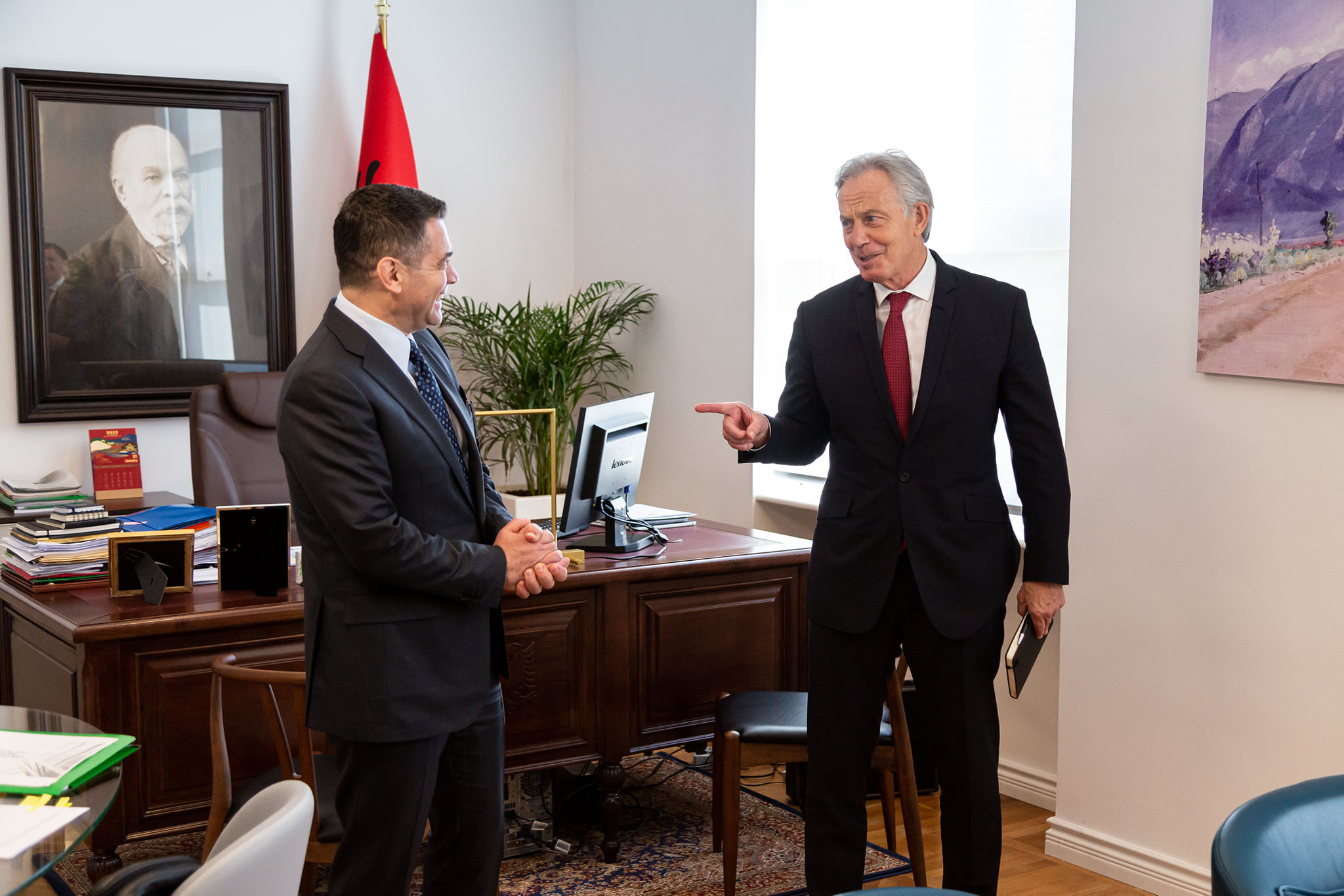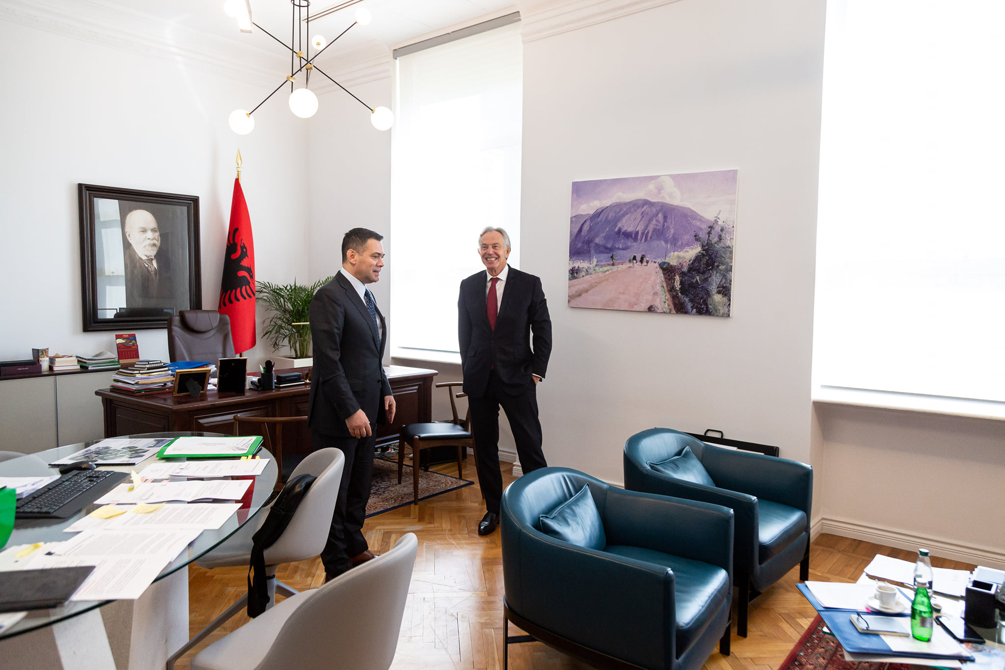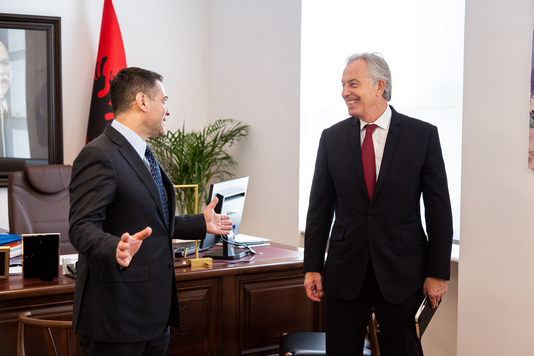 “Me ish-Kryeministrin britanik dhe mikun e mirë Tony Blair.”– shkruan Ahmetaj, ndërsa ndan disa foto nga takimi me ish-kryeministrin britanik.