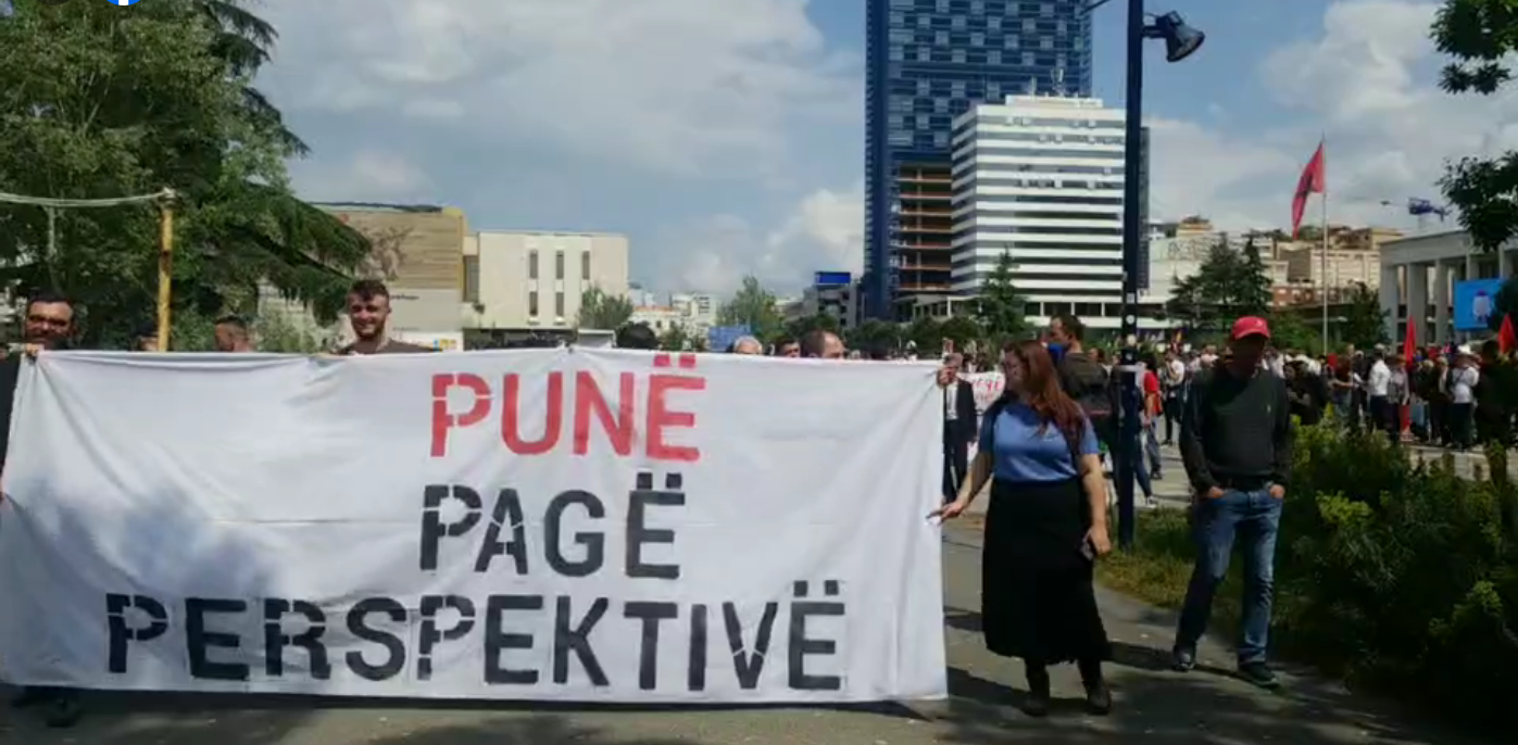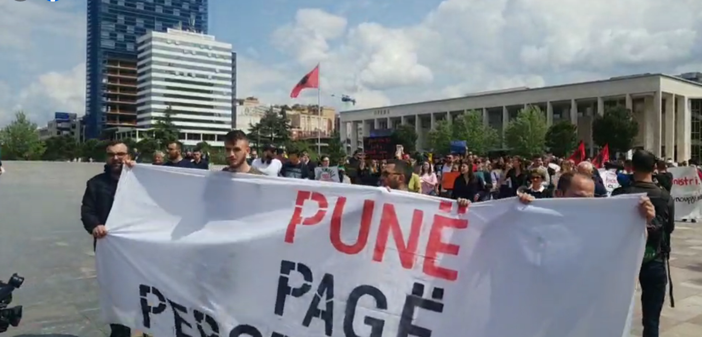 Aktivistët e mbledhur në sheshin Skënderbej bëjnë thirrje për të drejtat në punë.