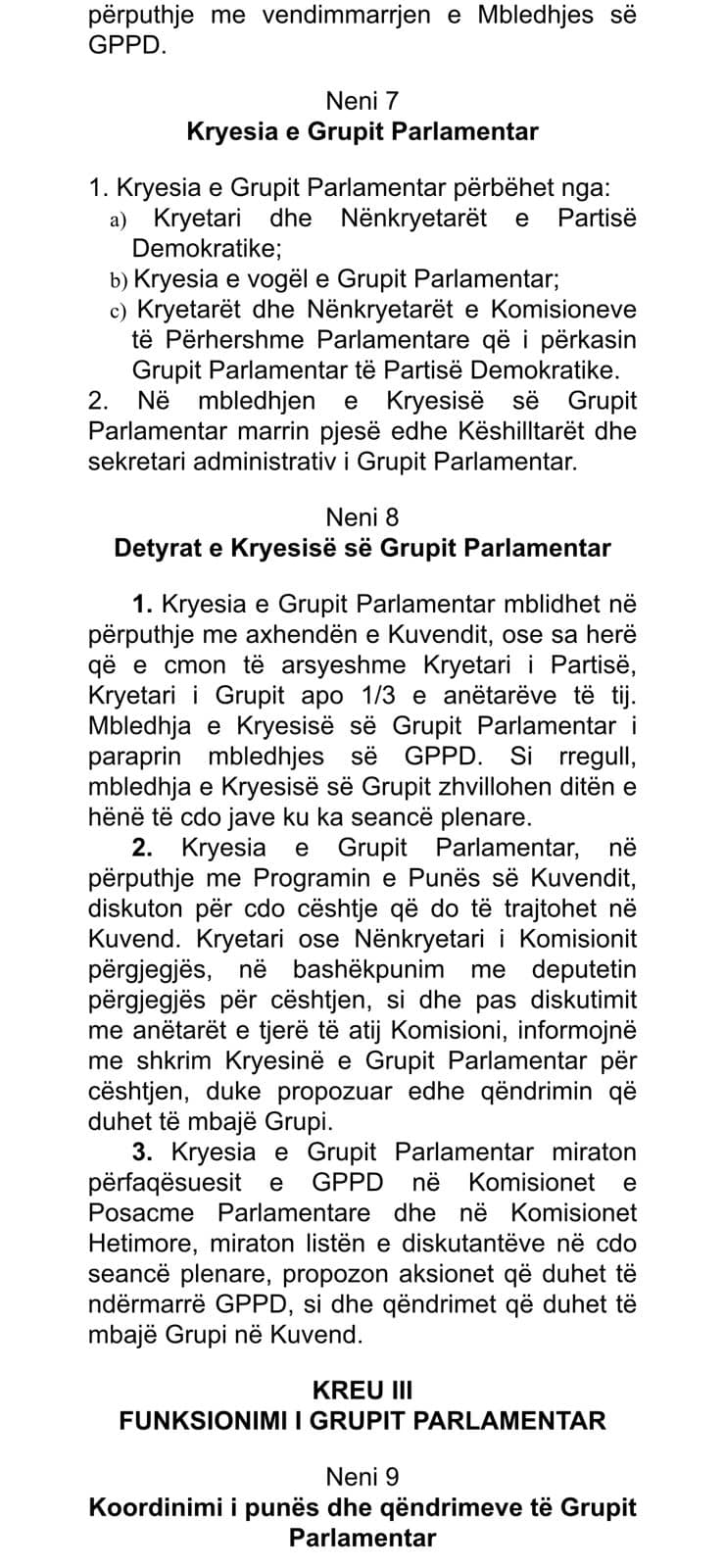 – Kryesia e Grupit Parlamentar përbëhet nga kjo Kryesia e vogël, kryetarët dhe nënkryetarët e komisioneve, nënkryetarët e partisë. Statuti e rregullorja e përcaktojnë qartë.