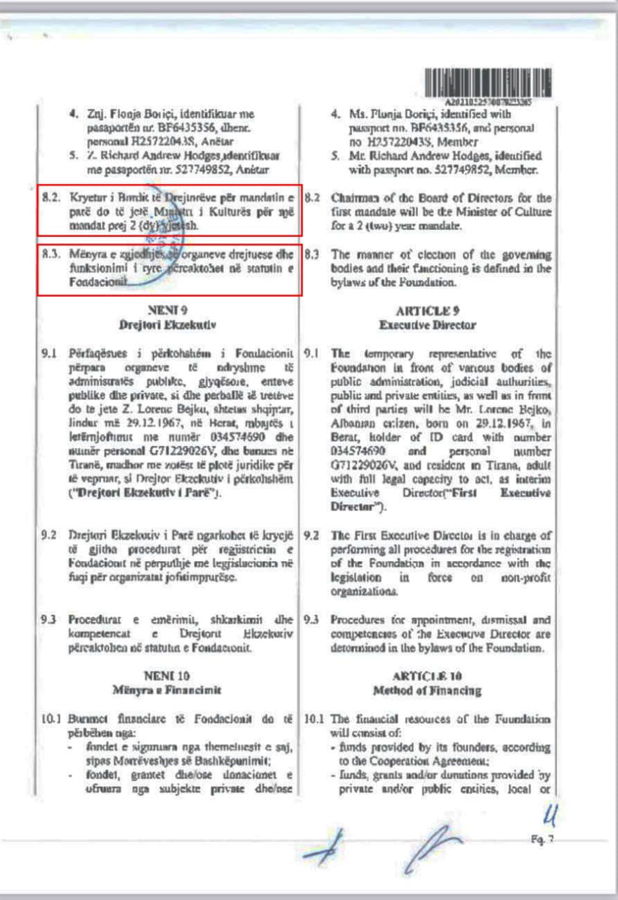 Pika 8.2 thotë që ministrja është kryetare bordi vetëm 2 vjet, dhe sigurisht nuk ka ndonjë të drejtë veto!