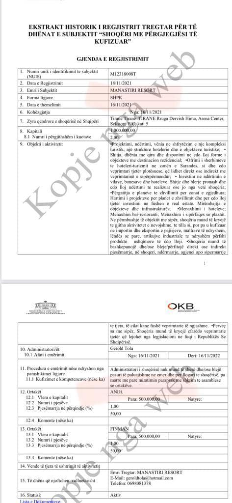 Pra gjysma e resortit që përfitoi nga qeveria statusin e investitorit strategjik dhe lehtësirat që të ofron ky status zotërohet nga njerëzit e afërt të Damian Gjiknurit. Por nuk është vetëm ky problemi.