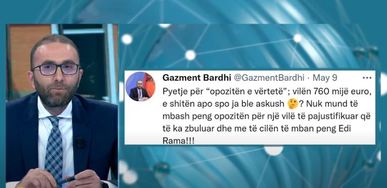 Deputeti Gazment Bardhi ka komentuar denoncimin e bërë në “Facebook” për një koleg të PD-së që sipas tij mbahet peng nga kryeministri Edi Rama përmes një vilet 760 mijë euroshe.