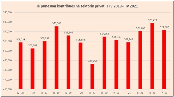 Sektori privat që është edhe punëdhënësi më i madh në ekonomi përgjatë periudhës 2018 -2021 u zgjerua me rreth 12 mijë punonjës shtesë.