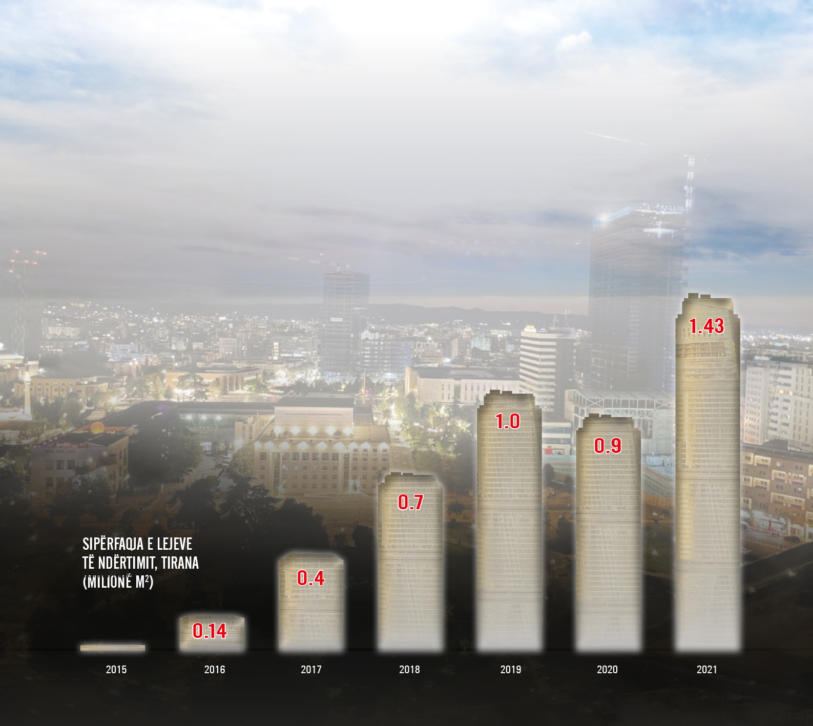 Në vitin 2021, sipërfaqja e lejeve të ndërtimit të dhëna në kryeqytet arriti rekordin e dy dekadave të fundit. Pse po ndërtohet kaq shumë? Kush po ndërton dhe kush po blen? Nga po vijnë paratë? Çfarë vlere të shtuar po i sjell ekonomisë kjo rendje drejt ndërtimeve? Deri ku do të shkojnë çmimet, që tashmë kanë arritur në 5 mijë euro/m2 për apartamentet dhe 20 mijë euro/m2 për ambientet tregtare? Si po “parkohen” paratë në kulla? A rrezikohet një flluskë e pasurive të paluajtshme në të ardhmen? Ku po shkon Tirana nga pikëpamja e arkitekturës? Një përpjekje për të zbuluar “përmasat” e vërteta të asaj që po ndodh në kryeqytetin e një prej shteteve më të varfra të Europës…