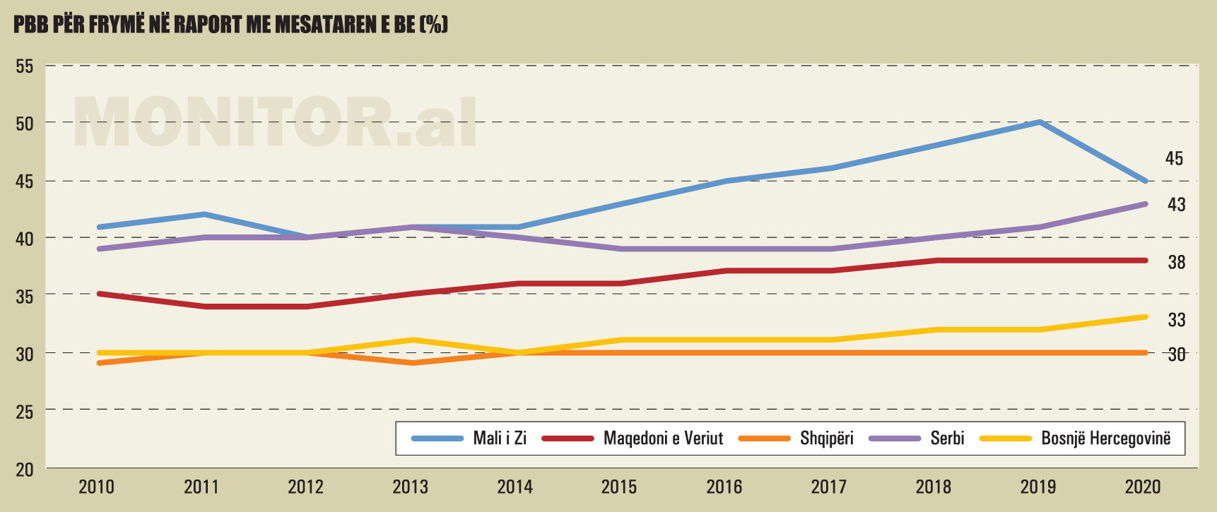 [1] Të dhënat e përpunuara nga “Monitor” bazuar në inflacionin dhe formulën e vlerës në kohë të parasë
