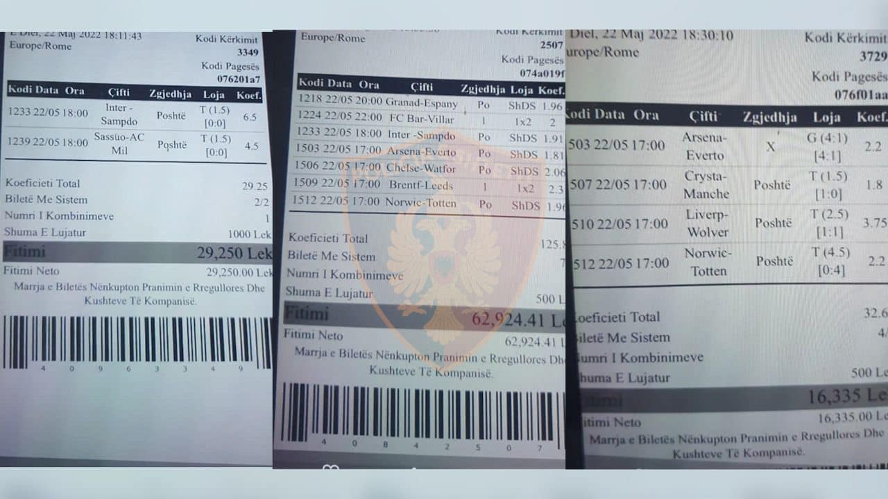 Nga verifikimet e kryera ka rezultuar se këta shtetas ushtronin aktivitetin e paligjshëm të lojërave të fatit, nëpërmjet lotarive sportive, në një lokal në Laknas, që shtetasi L. D. e kishte vendosur në dispozicion për organizimin e këtyre lotarive. Materialet procedurale i kaluan Prokurorisë pranë Gjykatës së Shkallës së Parë Tiranë, për veprime të mëtejshme.”