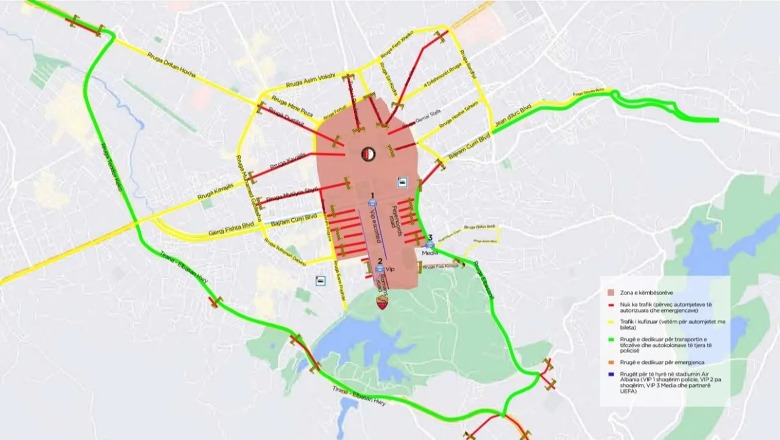 -Për 2 orë do të lejohen të qarkullojnë vetëm mjetet e Policisë, mjetet e përfaqësuesve të UEFA-s, automjetet e medias dhe të tifozëve që kanë bileta për parkim në parkimin e stadiumit.