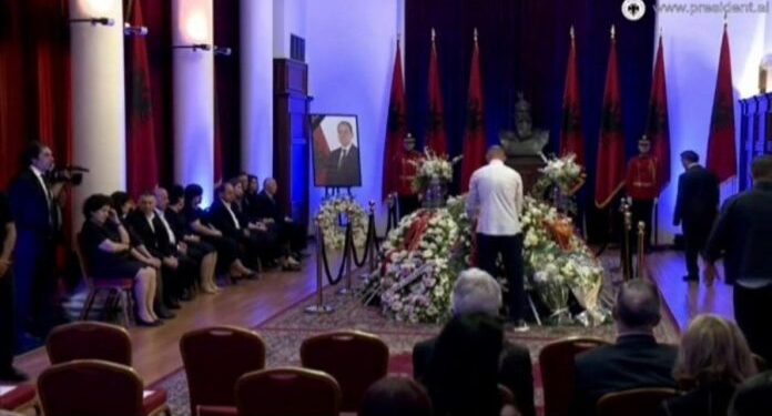 Ish-kryetari i Partisë Demokratike, Lulzim Basha nuk ka qenë i pranishëm në ceremoninë mortore të zhvilluar për ish-Presidentin Bujar Nishani por ai ka dërguar me postë një kurorë në ceremoni.