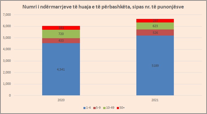 Në të kundërt, janë shtuar 648 subjekte të vogla, që kanë nga 1-4 punonjës dhe 93 biznese me 5 deri në 9 punonjës.