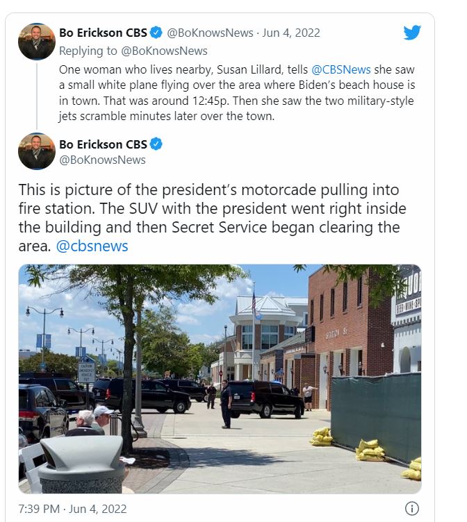 Vendndodhja e sigurt thuhet se ishte një stacion zjarrfikës aty pranë. Autokolona e Bidenit u pa duke udhëtuar drejt stacionit të zjarrfikësve, ku një SUV në të cilën ishte presidenti u fut brenda. Trafiku u mbyll për më shumë se 20 minuta ndërsa agjentët e Shërbimit Sekret pastruan zonën dhe hetuan kërcënimin e mundshëm.