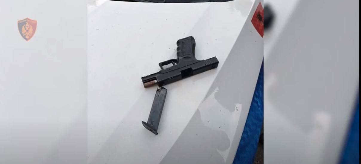 Gjatë kontrollit të mjetit me të cilin po qarkullonin këta shtetas, shërbimet e Policisë gjetën dhe sekuestruan, në cilësinë e provës materiale, një armë zjarri pistoletë, një krehër dhe municion luftarak.